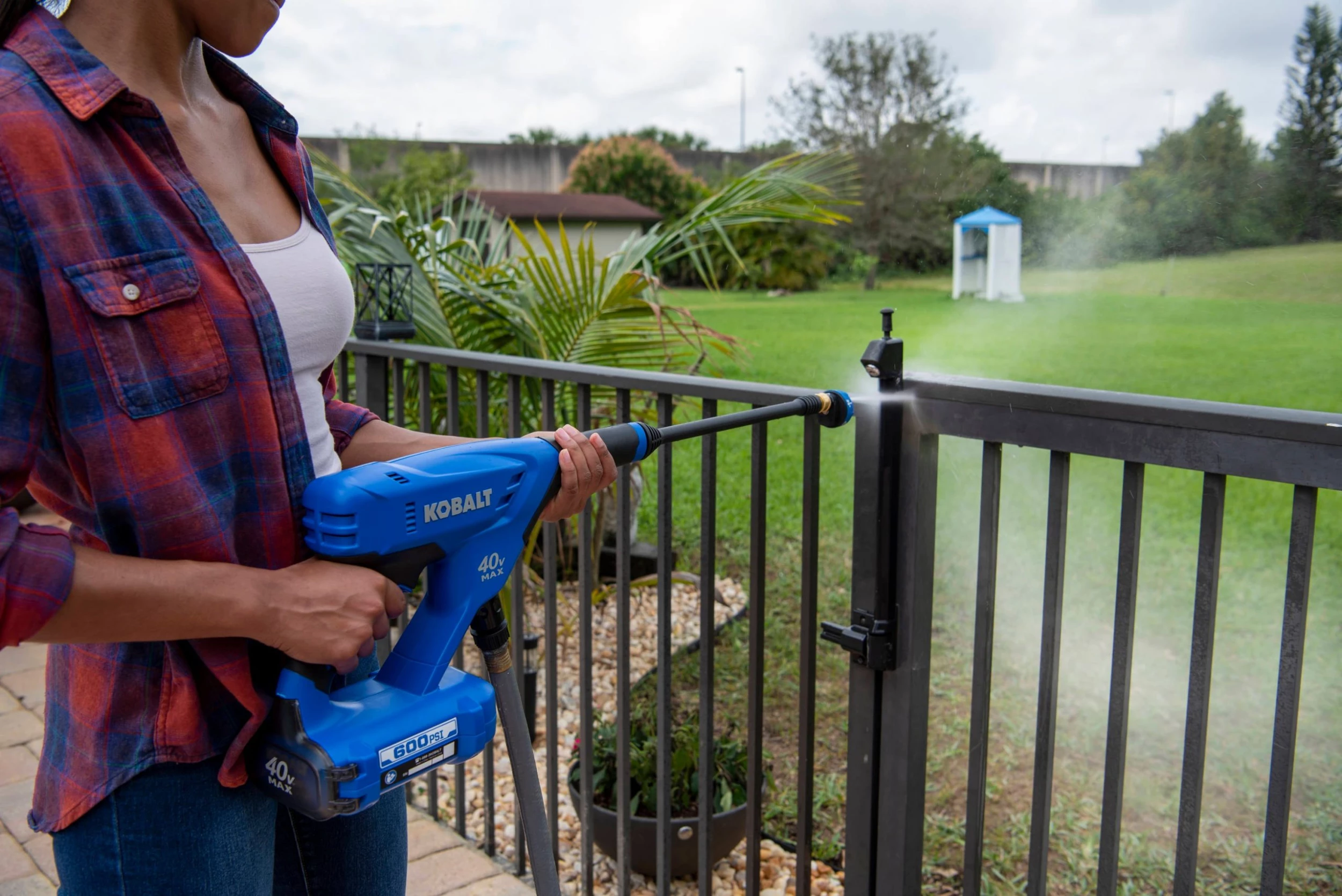 Compact, lightweight, and easy-to-use, the Kobalt 40-volt Power Cleaner is a must-have. With 600 PSI at 0.8 GPM, there’s plenty of power for cleaning windows, outdoor furniture, cars, boats, campers, and more. It features a versatile 5-in-1 nozzle for cleaning dirt and debris from a variety of surfaces, and works with any typical garden hose (3/8-inch quick-connect fitting is included). When a garden hose spigot isn’t available, the 20-ft self-siphoning hose pulls water from any fresh water source. The slip-resistant rubber molded grip is comfortable and ergonomic for less user fatigue. When the cleaning is done and it’s time to store it in the garage or shed, the wand is super-easy to remove for more compact storage. The Kobalt power cleaner has a water-resistant battery compartment for added protection, and is compatible with all 40-volt Kobalt batteries.