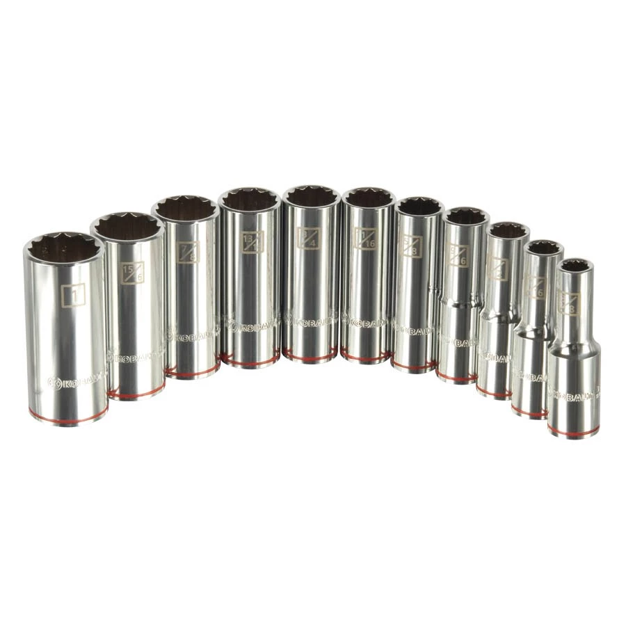 Kobalt Sockets & Socket Sets 11-Piece Standard (SAE) 1/2-in Drive 12-point Set Deep Socket Set