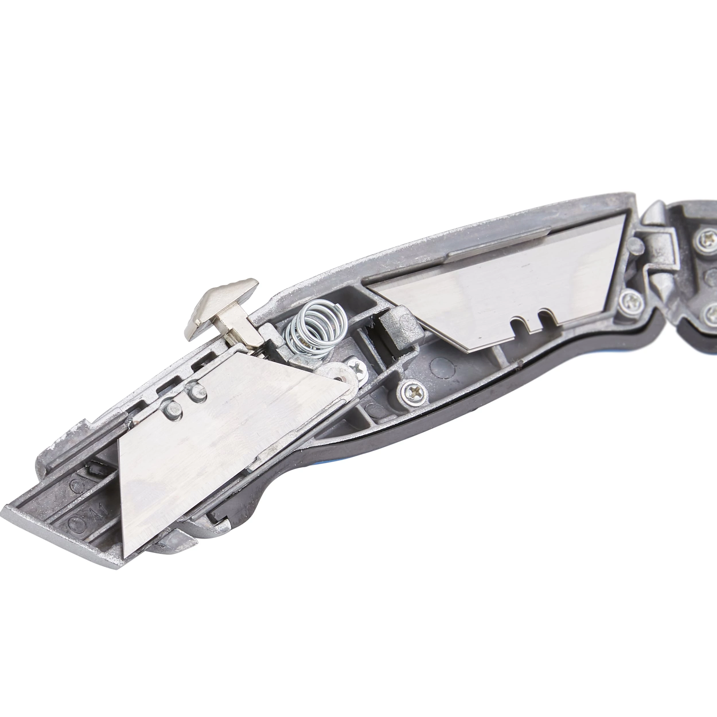 - Includes 3 blades: 1 installed and 2 stored in the handle